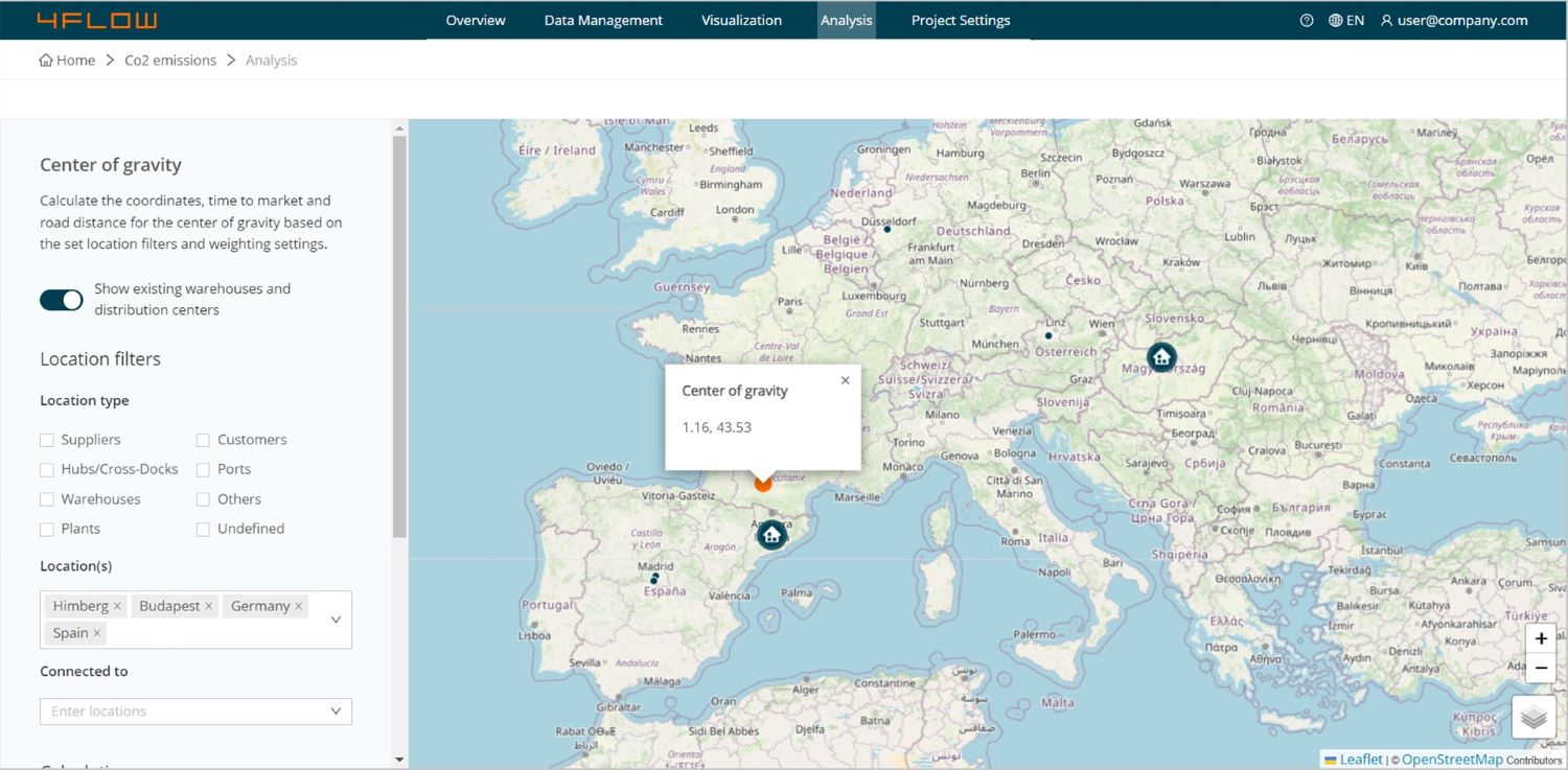 Recent technological development like the advancement of supply chain network design software has made center of gravity analyses more flexible. For instance, it is now possible to overcome the shortcomings mentioned above by integrating additional data points and large datasets. User-friendly platforms provide intuitive visualization of results, while some software enables users to combine center of gravity analysis with other optimization and simulation models. In this combined approach, COG helps identify a general area for a new site, and businesses can use a more detailed model to fine-tune their decision.