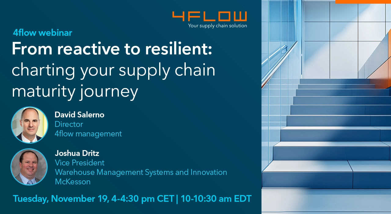 Discover strategies to develop supply chain maturity. Industry experts from 4flow and McKesson share their insights and best practices for enhancing supply chain efficiency, resilience and adaptability. They'll walk you through the stages of supply chain maturity, from foundational management to advanced optimization and innovation, and discuss actionable first steps to boost your operations.