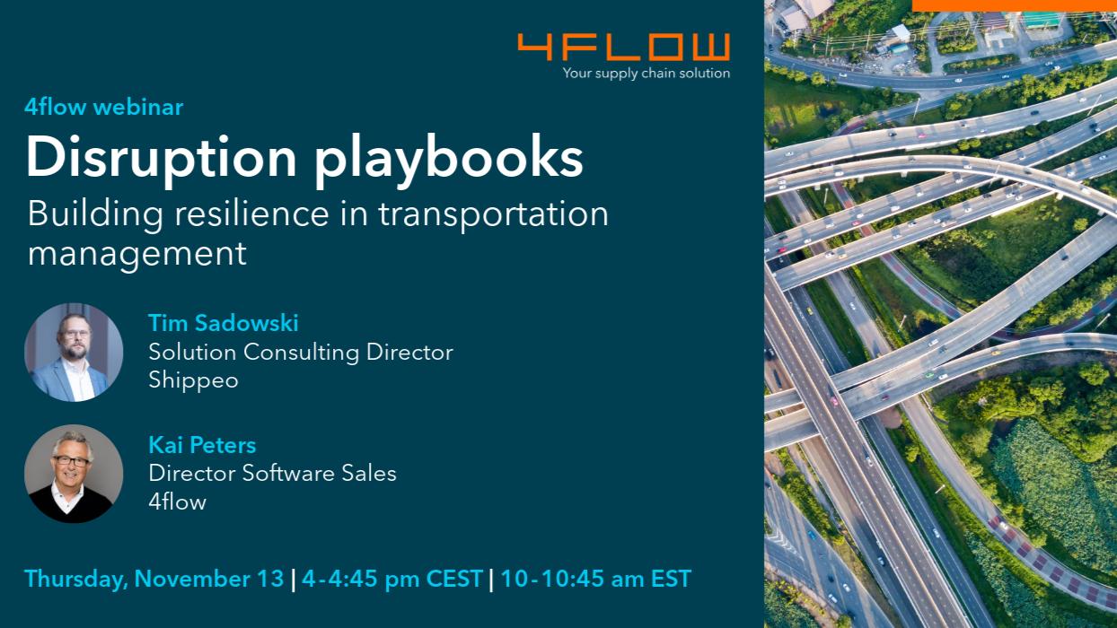 For transportation leaders, disruptions are a daily reality – from everyday risks to rare but high-impact black swan events, like sudden border closures or canal blockages. These delays affect service reliability, cost efficiency and customer trust. In this session, experts from Shippeo and 4flow show how predictive visibility and dynamic re-optimization help you anticipate risks, act before they escalate and keep logistics moving smoothly.